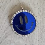 SMILEY BLAUW ACRYL EN STRAS BEDEL 4CM